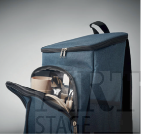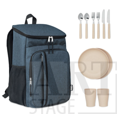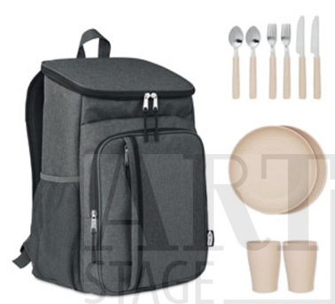 Durable and practical picnic cooler bag made from 600D RPET with spacious compartments and included table accessories for two people. Perfect for outdoor dining, camping, travel or as a branded corporate gift.
